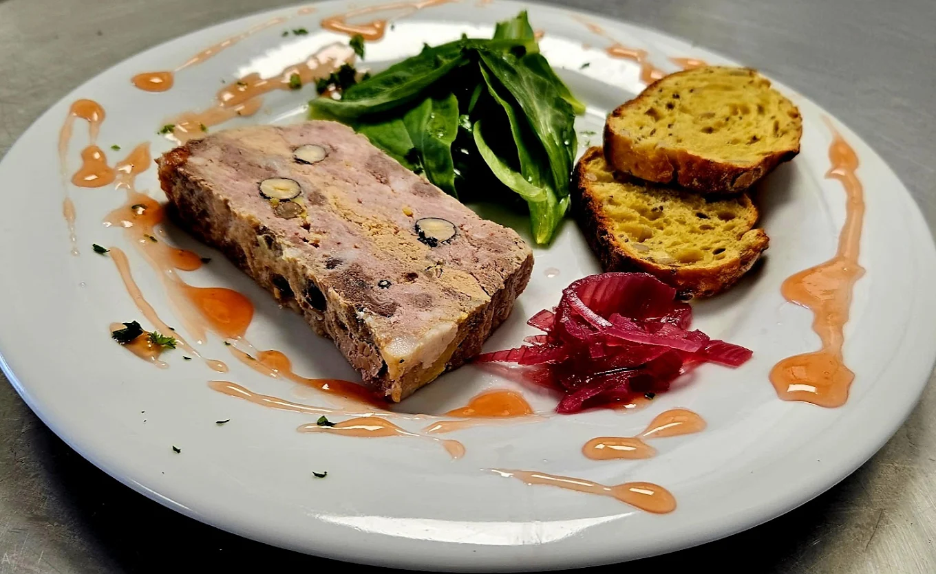 Terrine maison au foie gras, châtaignes & cèpes, gelée de coings (+2 €)